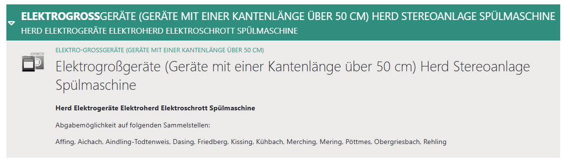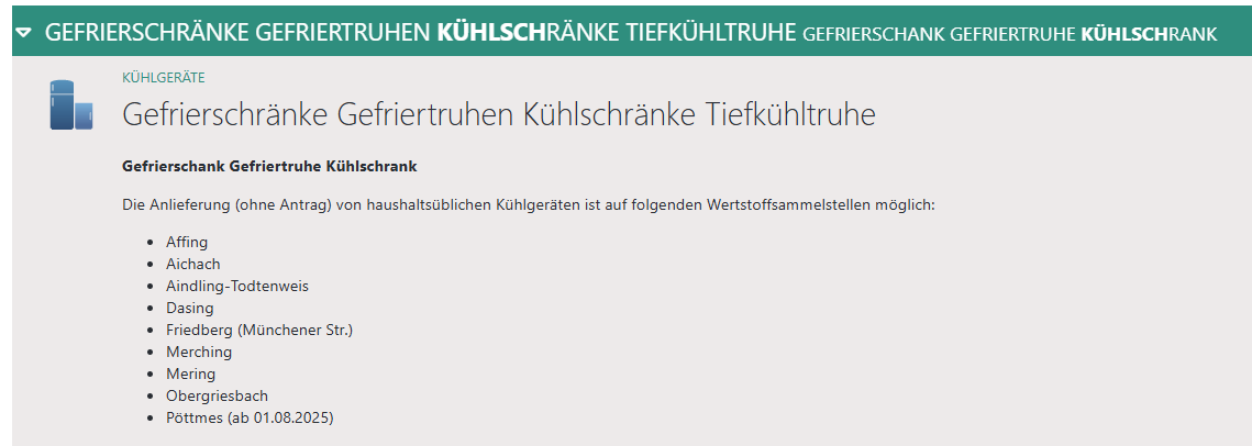 Auf den Wertstoffsammelstellen Friedberg (Münchener Straße), Merching und Todtenweis können Sie diese Geräte – ohne Karte – auch selbst abgeben.